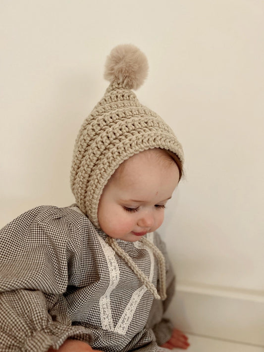 PIXIE HAND CROCHET BONNET - PARCHMENT