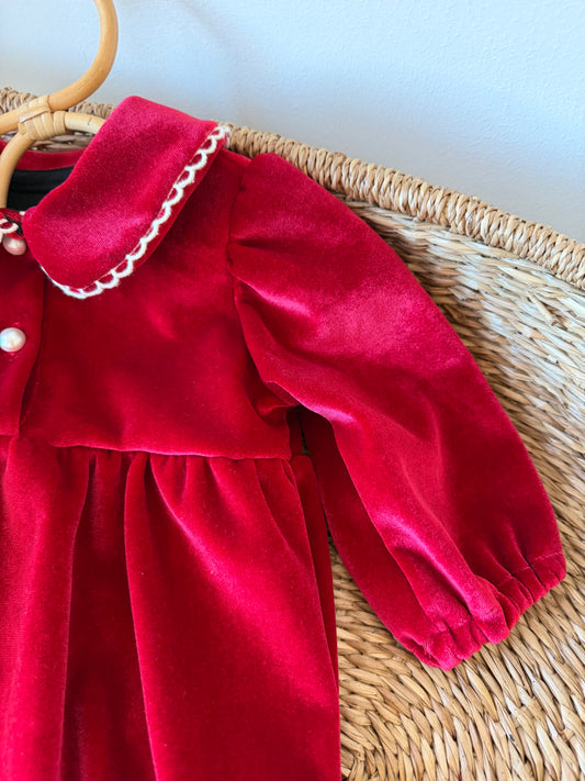 VELVET COLLAR PEARL ROMPER - DEEP RED
