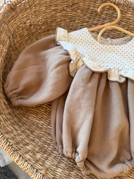 COTTON PLUSH DOTTY FRILL ROMPER - COCO