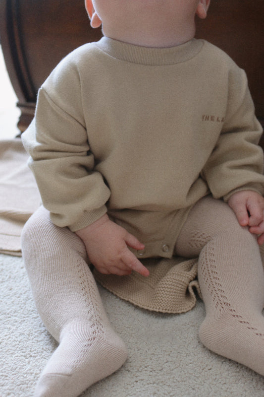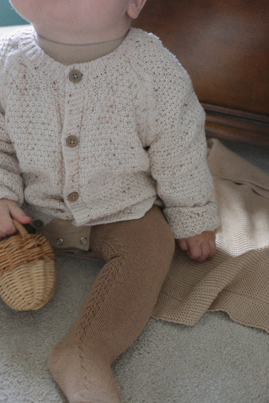 COTTON BLEND SIDE OPENWORK TIGHTS - BISCUIT