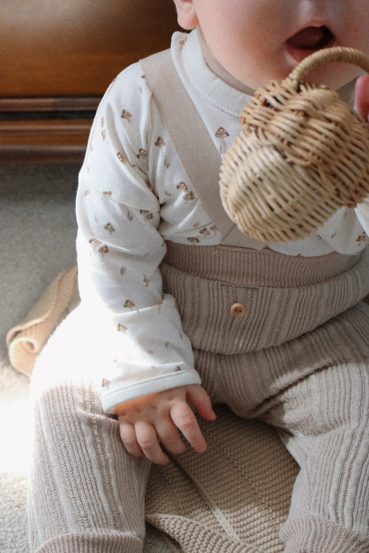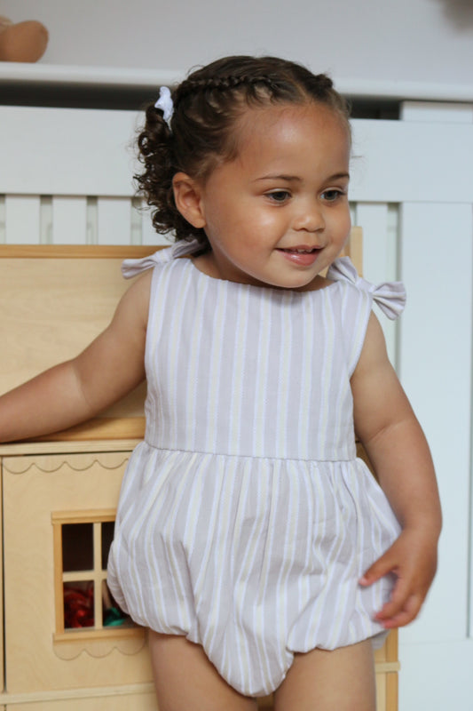 NATURAL GINGHAM BUTTON ROMPER - BEIGE/CREAM