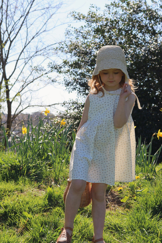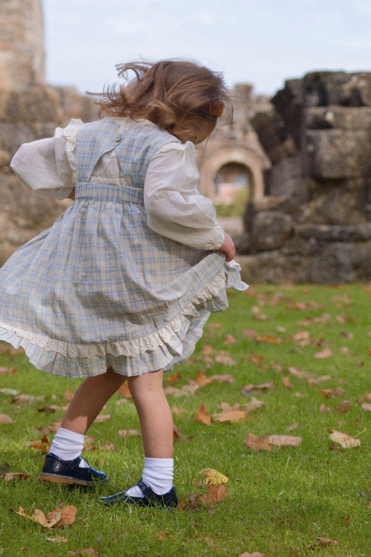DUSTY BLUE & CREAM BRODERIE TRIM PINAFORE