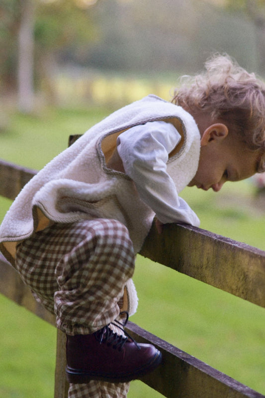 GINGHAM WIDE LEG FRILLED TROUSERS