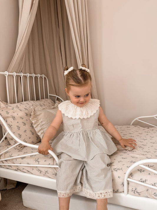 NEUTRAL STRIPE CO-ORD WITH FRILLED COLLAR