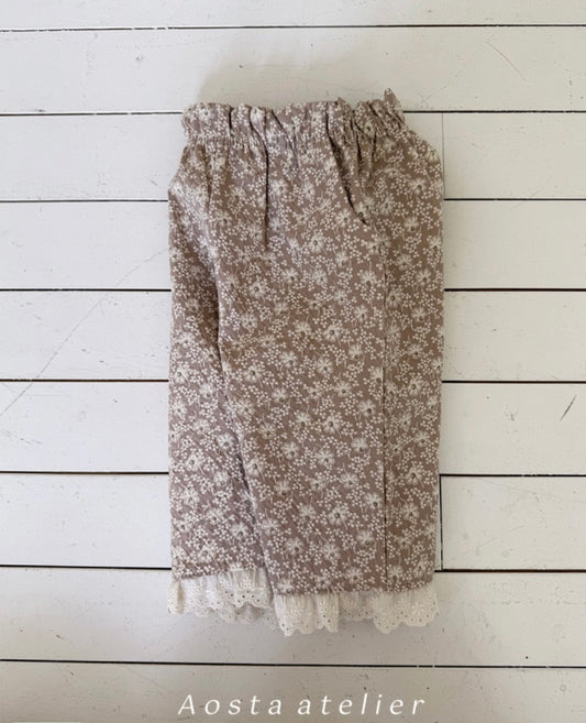 DAINTY FLOWER BEIGE CORDUROY FRILLED TROUSERS