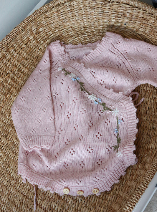FLORAL EMBRIODERY POINTELLE WRAP ROMPER