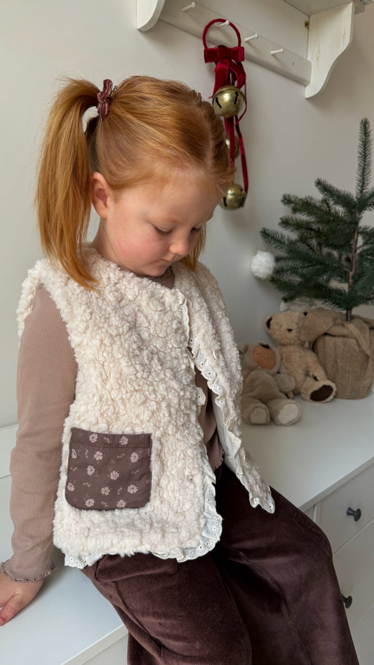 BRODERIE TRIM FAUX FUR POCKETED GILET