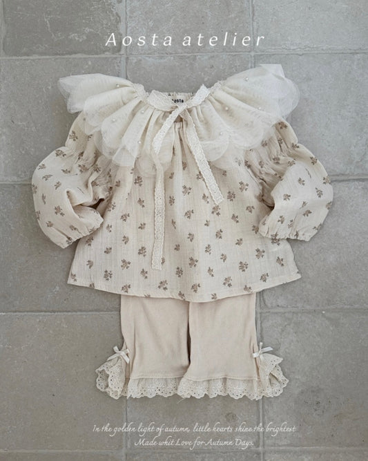 DAINTY FLOWER BEIGE CORDUROY FRILLED TROUSERS
