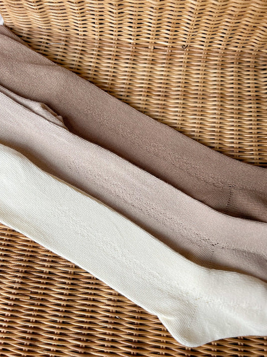 COTTON BLEND SIDE OPENWORK TIGHTS - BISCUIT