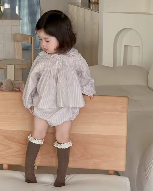 BEIGE STRIPE COTTON BLOUSE & BLOOMER