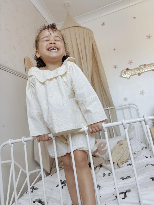 FLORAL BRODERIE COTTON BLOUSE & BLOOMER