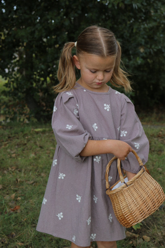 DUKSY GREY FLORAL EMBROIDERY SMOCK DRESS