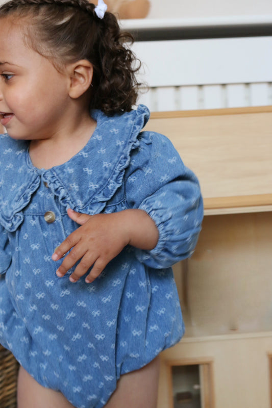 DENIM BOW COLLARED ROMPER