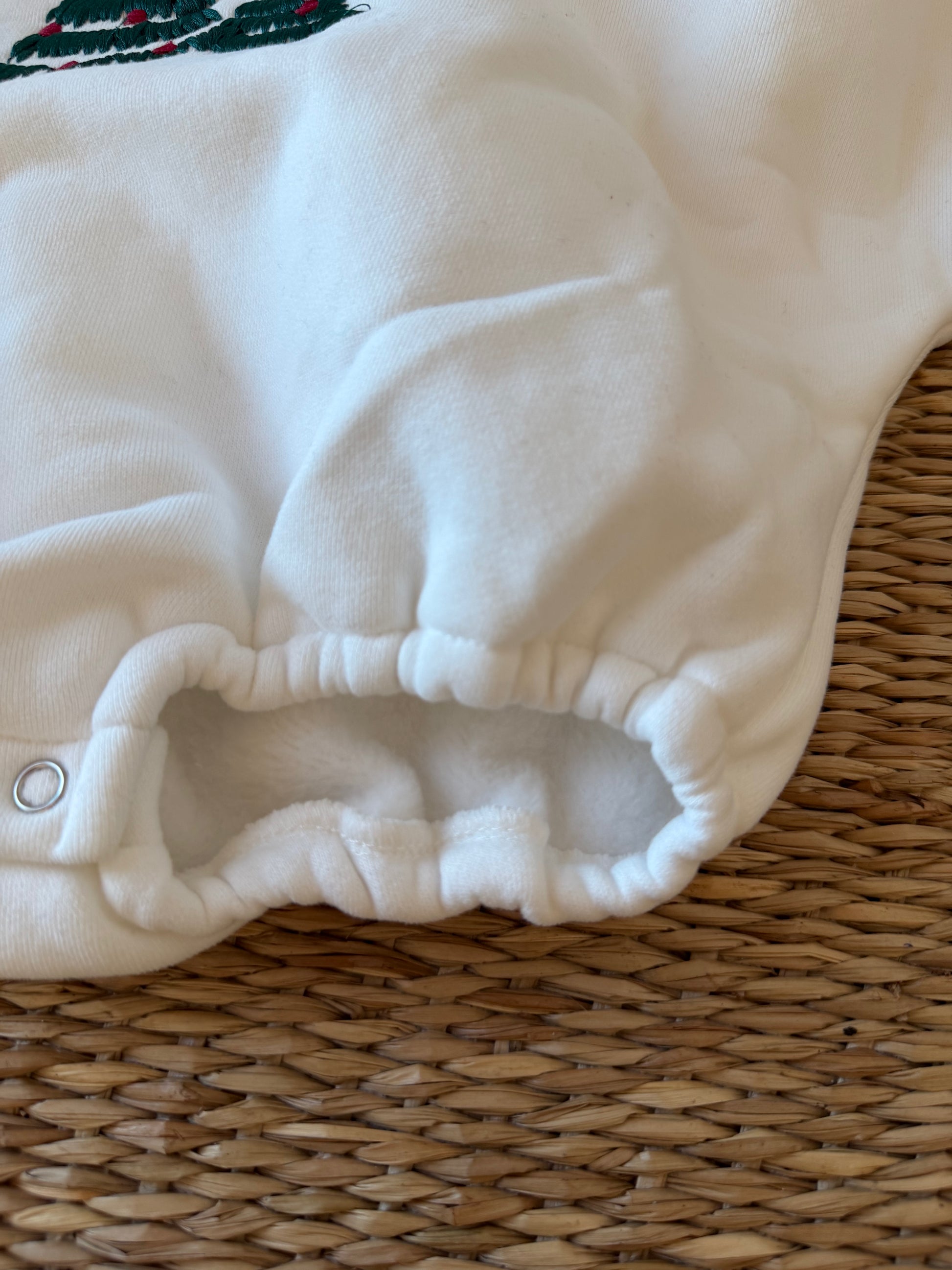 CHRISTMAS EMBROIDERED JERSEY PLUSH SNOW ROMPER